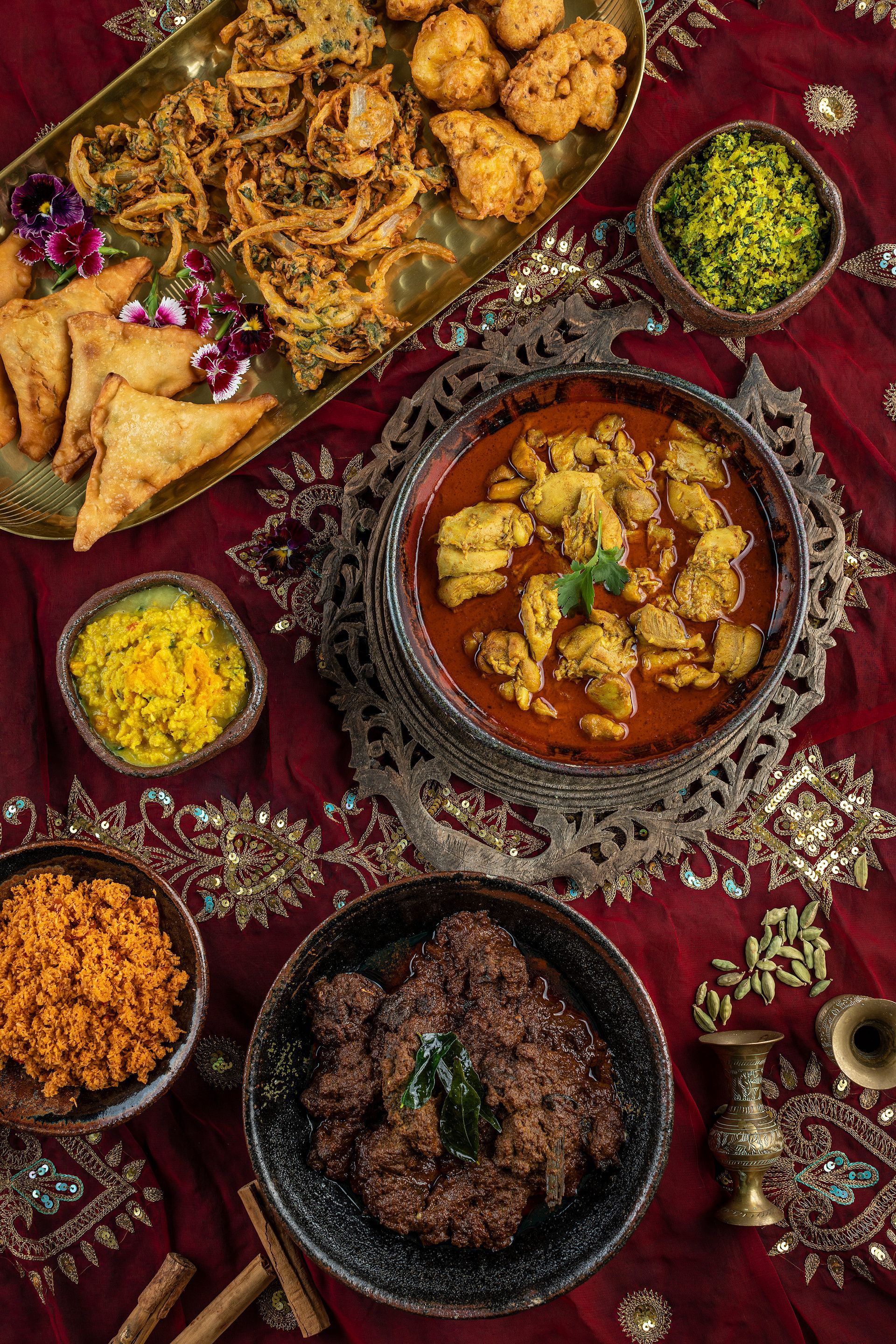 choice of black pork curry; beef and tamarind; chicken or mixed seasonal vegetables served with dahl, coconut sambal, pilau rice and pappadams. GF, Vegan option