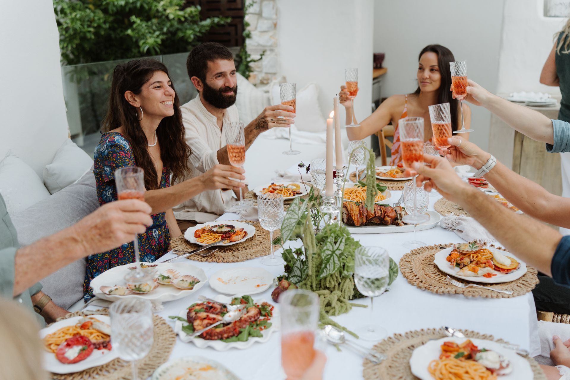Embark on a holiday right in the comfort of your own home or holiday rental. Allow us to whisk you away on an evening journey where every detail is meticulously curated for your enjoyment. Picture a stunning table adorned with luxurious linen, handmade ceramics, soft candlelight, and fragrant blooms, creating an ambiance that transports you to the destination of your dreams.